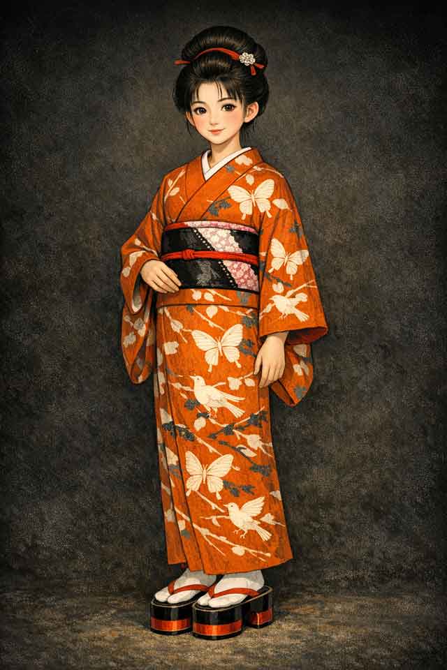 この土地の風俗は ほかと ひと味違って、女性できちんと後ろ帯を結んでいる人は少なく、派手な柄を好んで幅広の