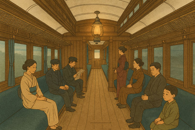 一人しかない。もとから込み合った客車でもなかったのが、急に寂しくなった。日の暮れたせいかもしれない。駅夫が屋根をどしどし踏んで、上から